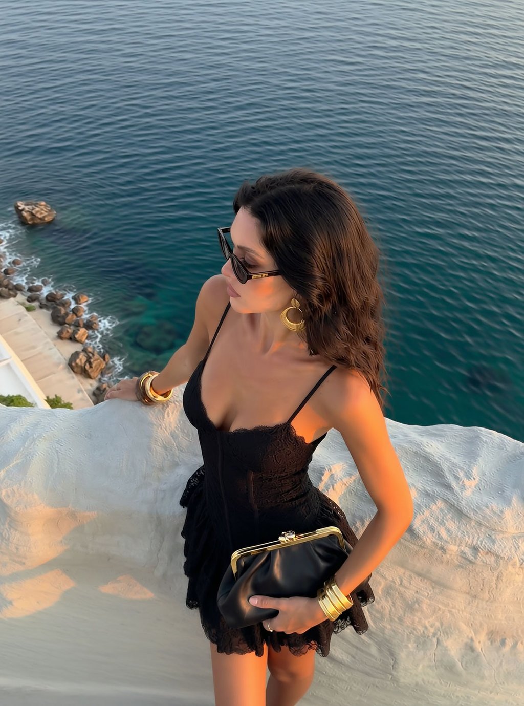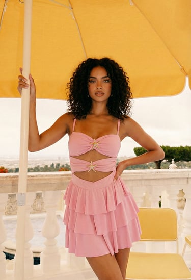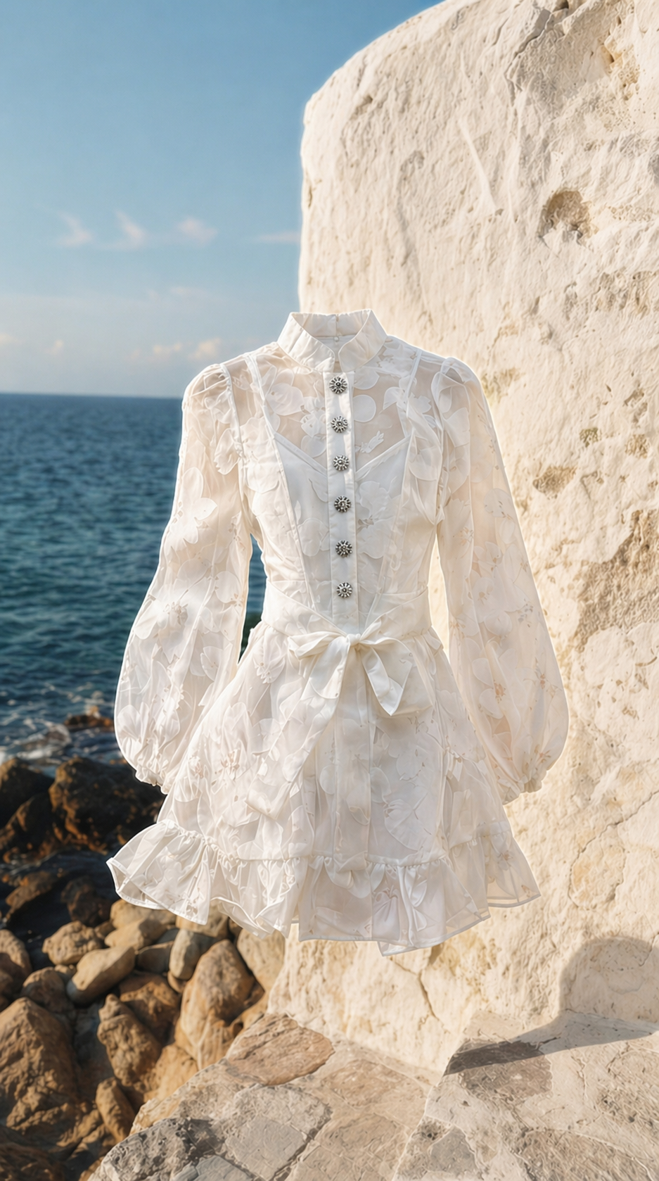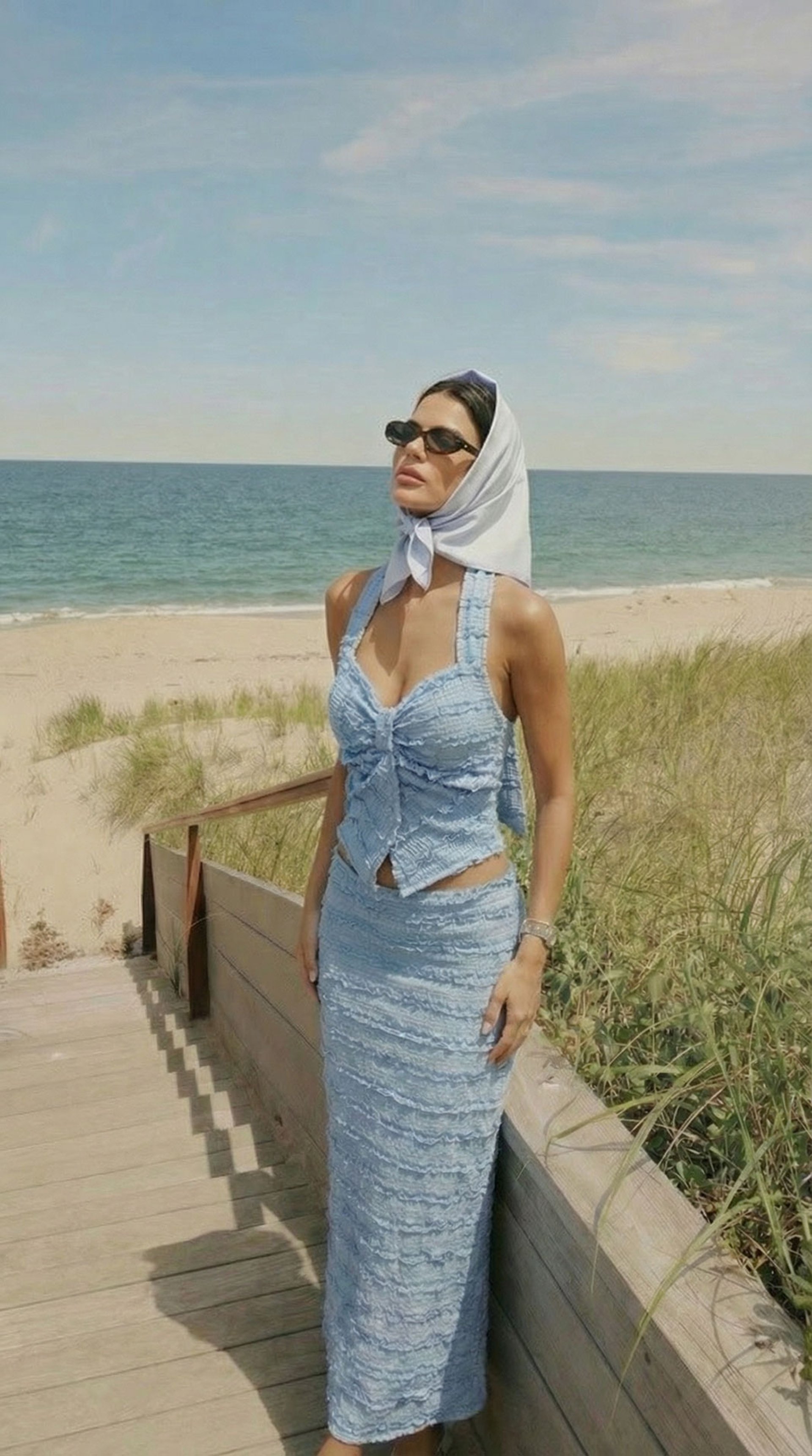 She’s editorial, elevated, and timeless — soft textures meet structured tailoring. High-waist brown pants pair with a ruffled V-neck blouse, layered with a printed cardigan that’s luxe and tactile. Every detail exudes sophistication — elegant, curated, and effortlessly ready for wherever life takes her.
