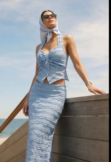 She’s the free spirit with a bold heart — Wild Guurl rides on confidence and charm. Untamed but polished, she mixes denim dust with designer dreams. Her look? A long denim skirt paired with a crisp blue shirt and a soft brown suede jacket, topped with her statement cowboy hat — rugged textures meeting refined taste.
